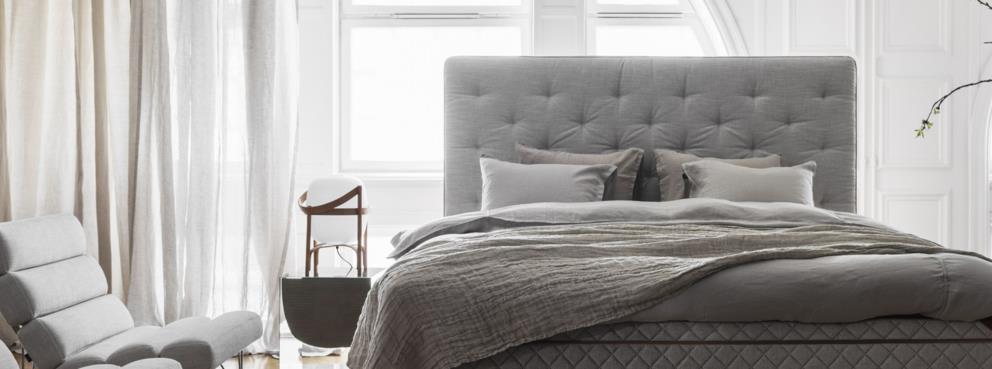 DUX Royal is a series of complementary bed accessories, such as bed skirts and decorative cushions. The design was developed in collaboration with the legendary Hotel d’Angleterre in Copenhagen. A headboard with comfortable, supportive padding. The clean design is based on traditional deep tufting and is also available with or without buttons.