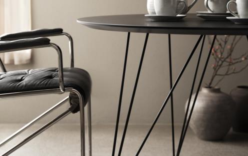 Classic elegant table designed by Bruno Mathsson. It is manufactured in white or black marble.