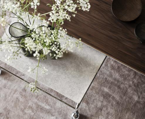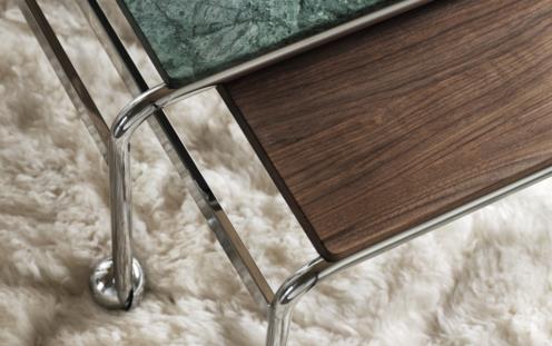 Based on Bruno Mathsson’s original table, designed to accompany his classic chair, this slightly larger option provides more surface space with the same elegant aesthetics of the Karin collection. The chrome-plated frame is topped in exclusive marble, limestone or walnut.